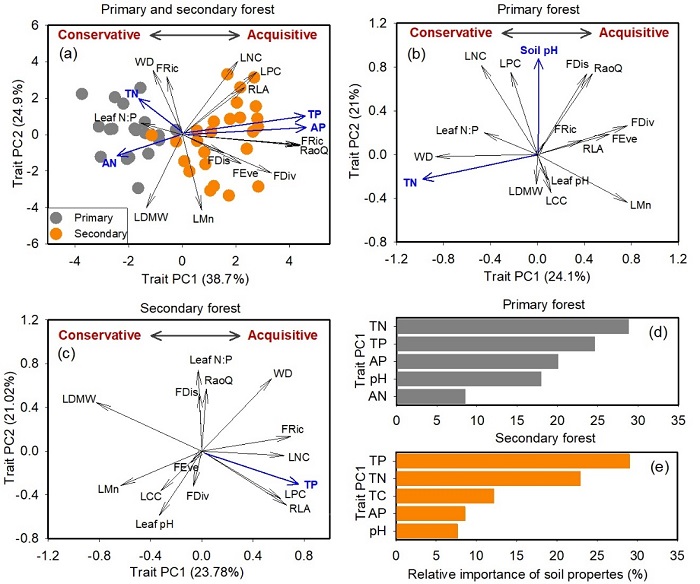 相关研究成果以Plant Functional Traits Define Microbial Response to Nutrient Availability in Tropical Rainforest Soil为题发表在生态学顶级期刊《Global Change Biology》。热林所陈洁副研究员为第一作者,李艳朋副研究员为共同第一作者,许涵研究员为通讯作者。热林所李意德研究员、陈德研究员和周璋副研究员对本研究做出了重要贡献,中国科学院华南植物园刘占峰研究员、澳大利亚西澳大学Hans Lambers教授和德国哥廷根大学Yakov Kuzyakov教授为论文提供了宝贵建议。该研究工作得到中国林科院优秀青年创新人才培育项目(CAFYBB2020QB003)和国家自然科学基(32371851)的资助。(陈洁)