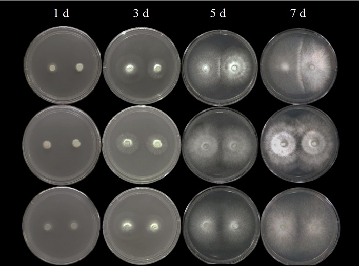 木腐菌作为一类可降解木质素和纤维素的真菌,在伐桩的处理方面具有一定潜力。有研究通过使用由单一木腐菌制成的菌剂,实现了对伐桩的有效防控。亦有诸多研究结果表明,因白腐菌降解木质素和褐腐菌降解纤维素的特点,将二者进行复合培养能够有效提高相关酶水解效率。因此,本研究立足于木腐菌的降解特性,创新性地将二者进行复合培养应用于伐桩的处理上,不仅有效降低了松材线虫病二次传播的风险,更加速了伐桩的分解,促进了林地的养分循环。