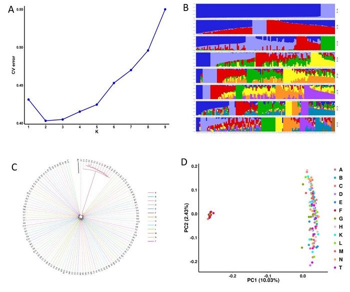 研究采用简化基因组测序(GBS)技术,对来源于广东省13个地区的126份黄花风铃木种质资源进行了分型,并结合系统发育树、群体结构、亲缘关系和主成分分析,将126个个体划分为两个亚群,这两个亚群的种子形态存在显著差异。进一步通过GWAS分析,鉴定出29个与种子形态指标显著关联的SNP位点,并关联到68个与目标性状相关的候选基因。随后,通过整合表达水平和功能注释,共筛选出29个关键候选基因。结合qRT-PCR分析,最终鉴定出CDL12_15522、CDL12_15254、CDL12_11100和CDL12_11105四个与种子形态密切相关的关键候选基因。研究揭示了黄花风铃木的分类及种子形态性状的遗传基础,为阐明其遗传背景和分类提供了理论依据。
