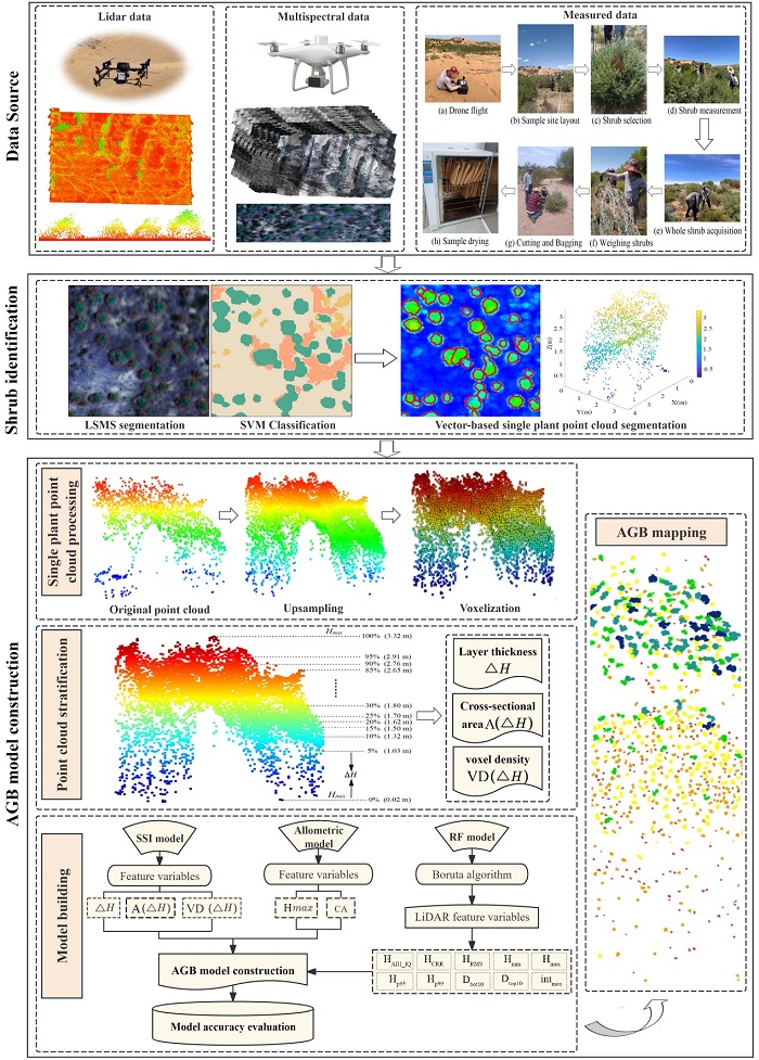 [草原动态]资源所草原与荒漠化遥感创新团队针对无人机激光雷达在监测荒漠化草原和灌丛化草原低矮灌木时面临的点云密度低、结构信息残缺,以及传统建模方法难以刻画灌木复杂非层次化三维结构的技术瓶颈,提出了一种灌木结构指数(Sh...